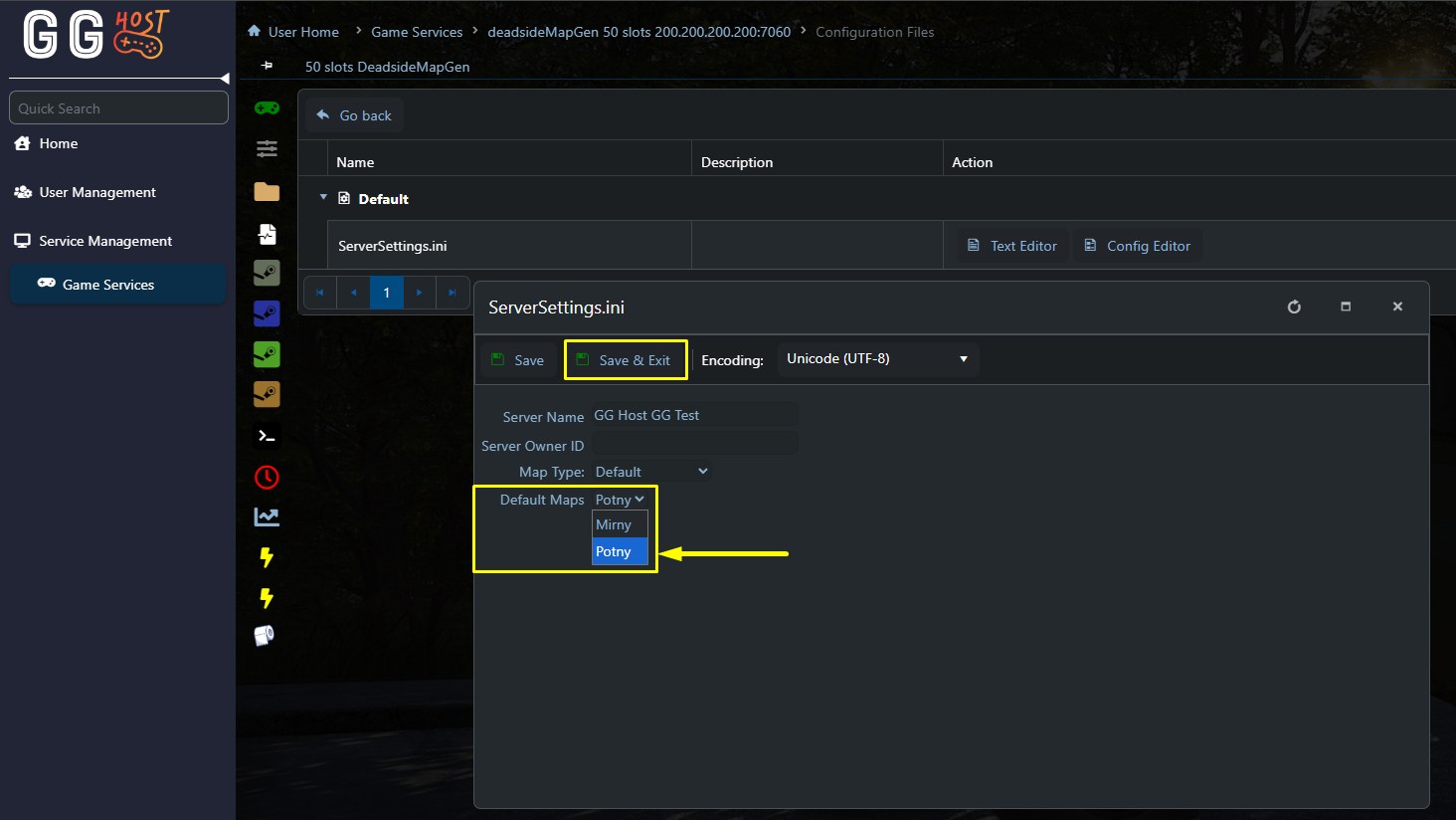 First you will need to login to your GGHost game panel, then open the Deadside service that you would like to edit. Stop the server before making any changes, map changes only apply after a full restart.