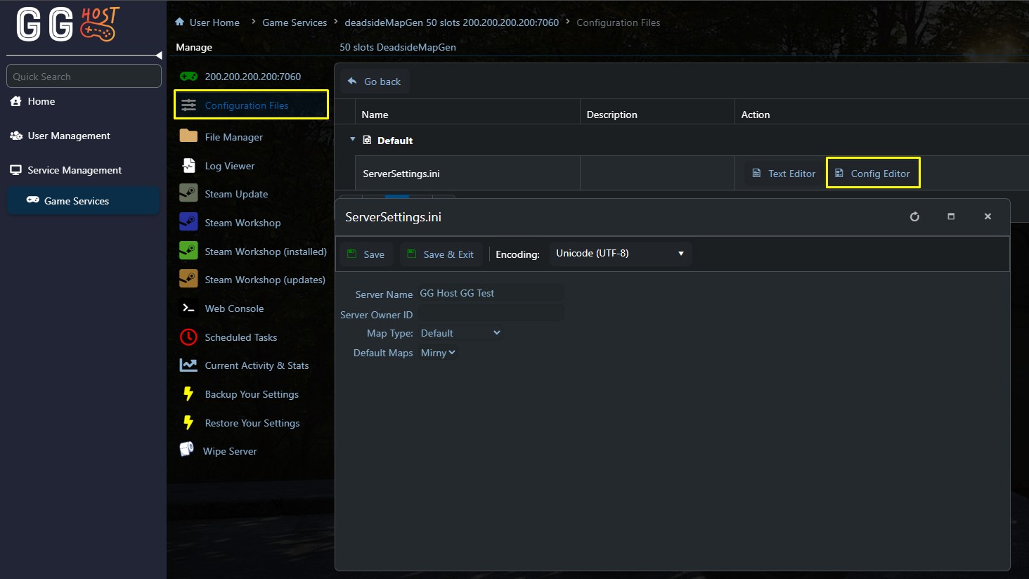 First login to your GGHost game panel, then open the Deadside service that you would like to edit. Stop the server before making any changes, map changes only apply after a full restart.